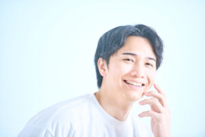 セラミックの綺麗な歯で笑う男性
