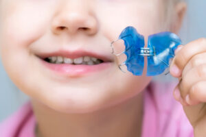 床矯正の装置を手にする子ども